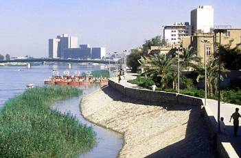 الجغرافي)! ان وجود نهري دجلة والفرات اللذان يصبان في سهل منبسط محاط بجبال وهضاب